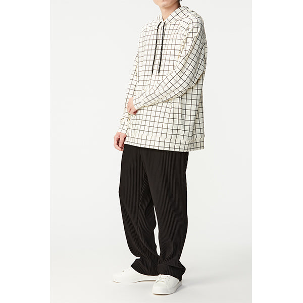 程よく弾力のある素材にプリーツ加工が施されたパンツです。