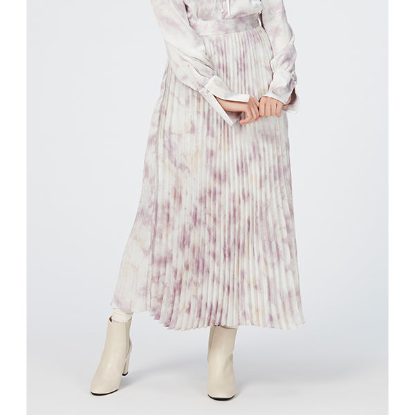 繊細なタッチのニュアンスプリントが施された、上質なサテン素材のプリーツスカート。
