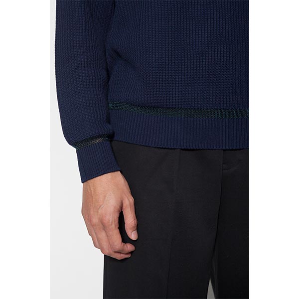 裾と袖部分は、透け感を出せる糸に切り替えて、ベーシックだけどデザイン性を加えすっきりとした印象に仕上げました。