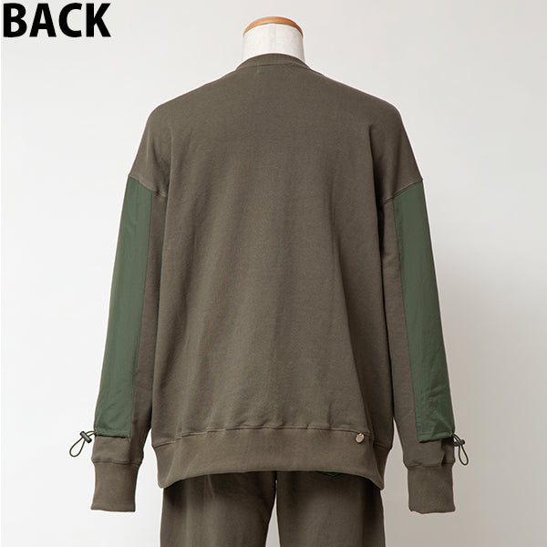 スエットならではの着心地の良さを活かしながら、ナイロンタフタを部分的に使用する事で、よりデザイン性の高いファッショナブルな印象に仕上げました。
