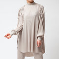 肩部分にギャザーを入れて、着用した際に立体感がでるように仕上げました。