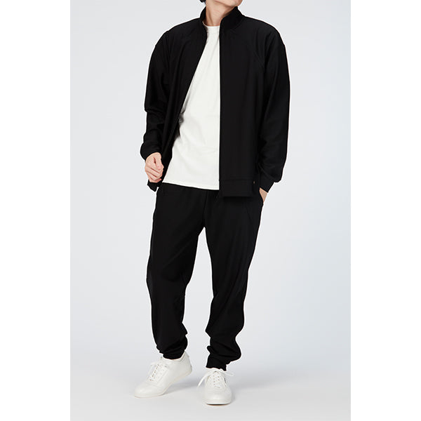 素材は縦横にストレッチ性が高い着心地の良い素材を使用。羽織るだけでスタイリングが決まる、存在感のある1枚。