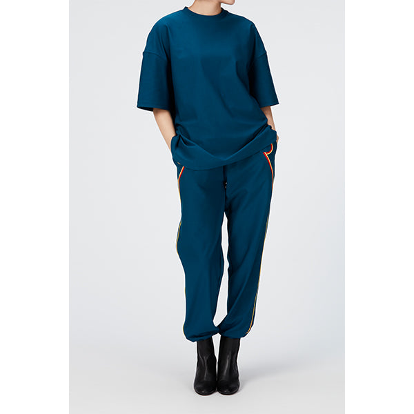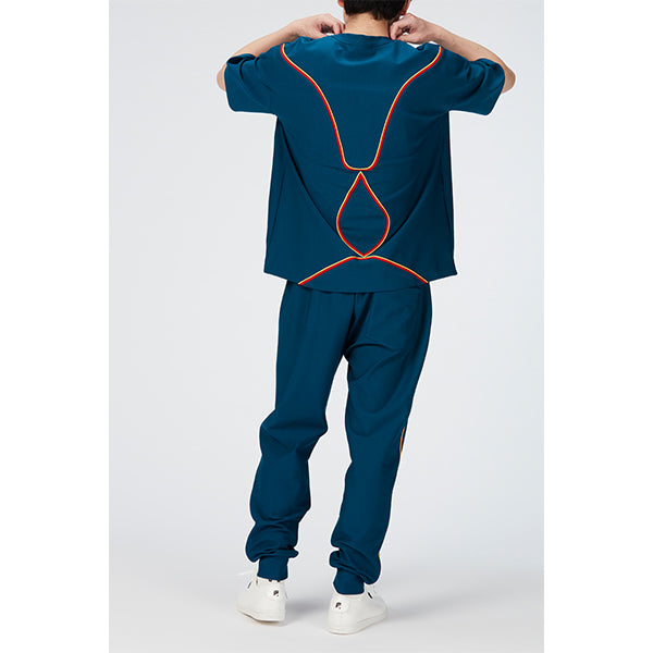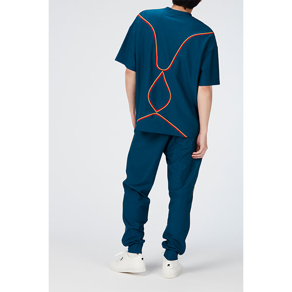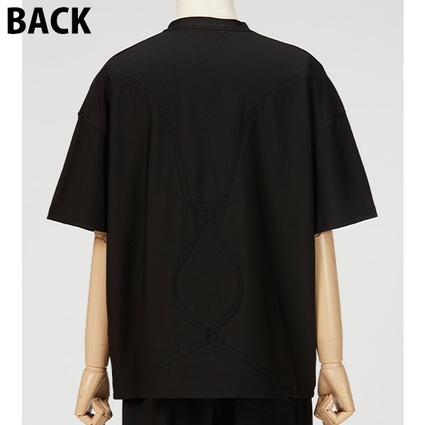 後身頃に配された曲線的なテープ装飾がポイントのTシャツ。素材は縦横にストレッチ性が高い着心地の良い素材を使用。程よい、ゆとり感のあるシルエットで様々なスタイリングをお楽しみいただけます。