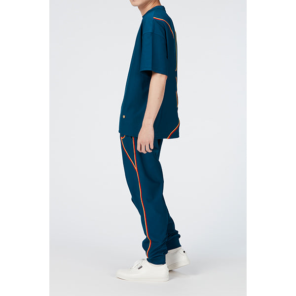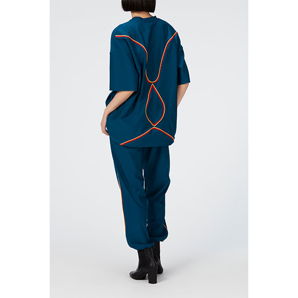 後身頃に配された曲線的なテープ装飾がポイントのTシャツ。素材は縦横にストレッチ性が高い着心地の良い素材を使用。程よい、ゆとり感のあるシルエットで様々なスタイリングをお楽しみいただけます。