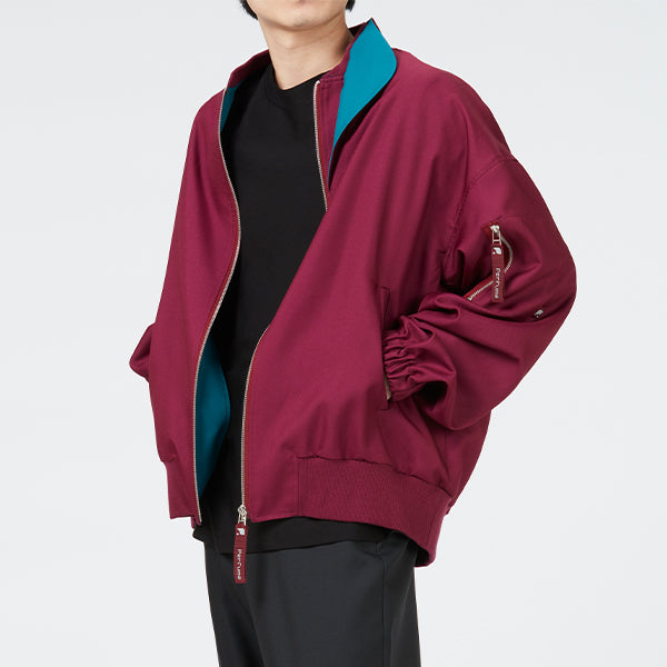 特徴的な形のグリーンの衿がポイントのブルゾンです。