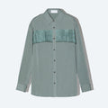 胸元のプリーツパーツがポイントのシャツ。